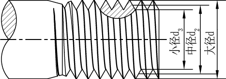 1.5、外螺纹::d:外螺纹大径;d2:外螺纹中径;;d3:外螺纹小径;P:螺距